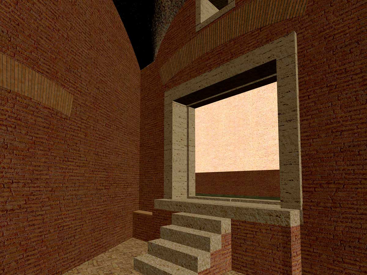 figura 22 - L'interno di una delle tabernae al III livello del Corpo Centrale che affacciano su via della Torre. L'ambiente comunicava sul lato opposto con uno degli appartamenti al "piano nobile". La strada in questo tratto si trovava a una quota lievemente più alta. Il collegamento doveva essere necessariamente risolto per mezzo di una scaletta che è stata in seguito asportata.