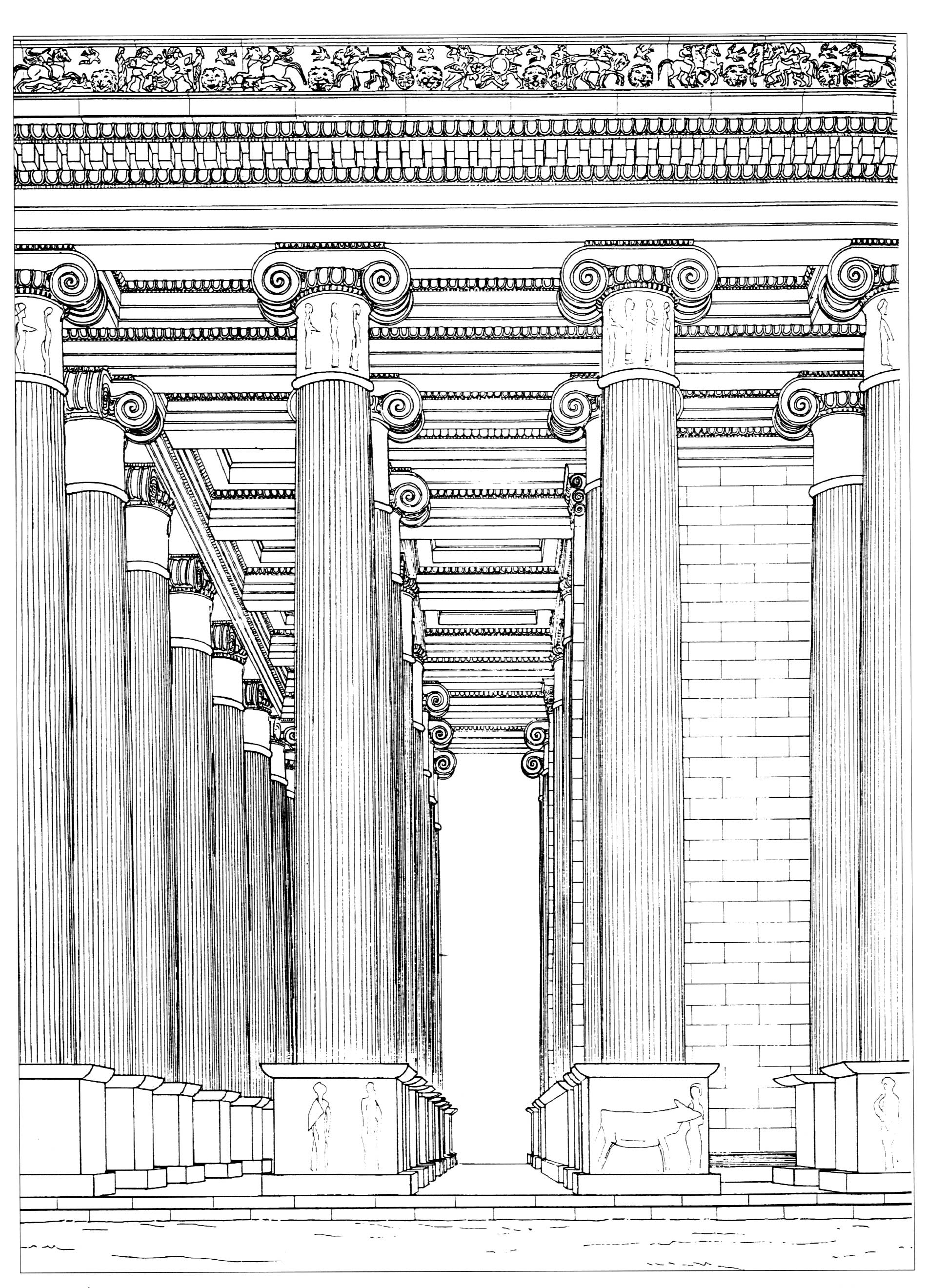 Fig. 16 — Efeso. Tempio di Artemide (D) del VI secolo a.C. Restituzione dell’elevato (KRISCHEN 1938)