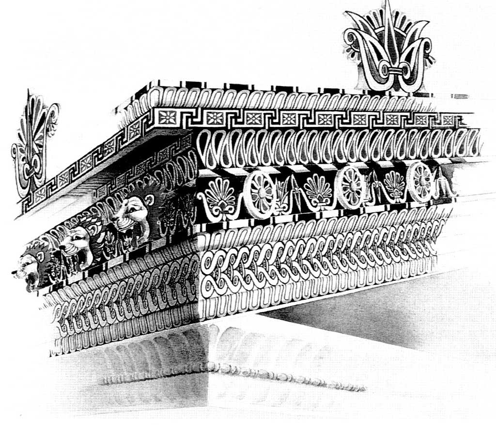Fig. 7 - Poseidonia. Tempio di Hera I. Ricostruzione della sima a baldacchino (MERTENS 1993)
