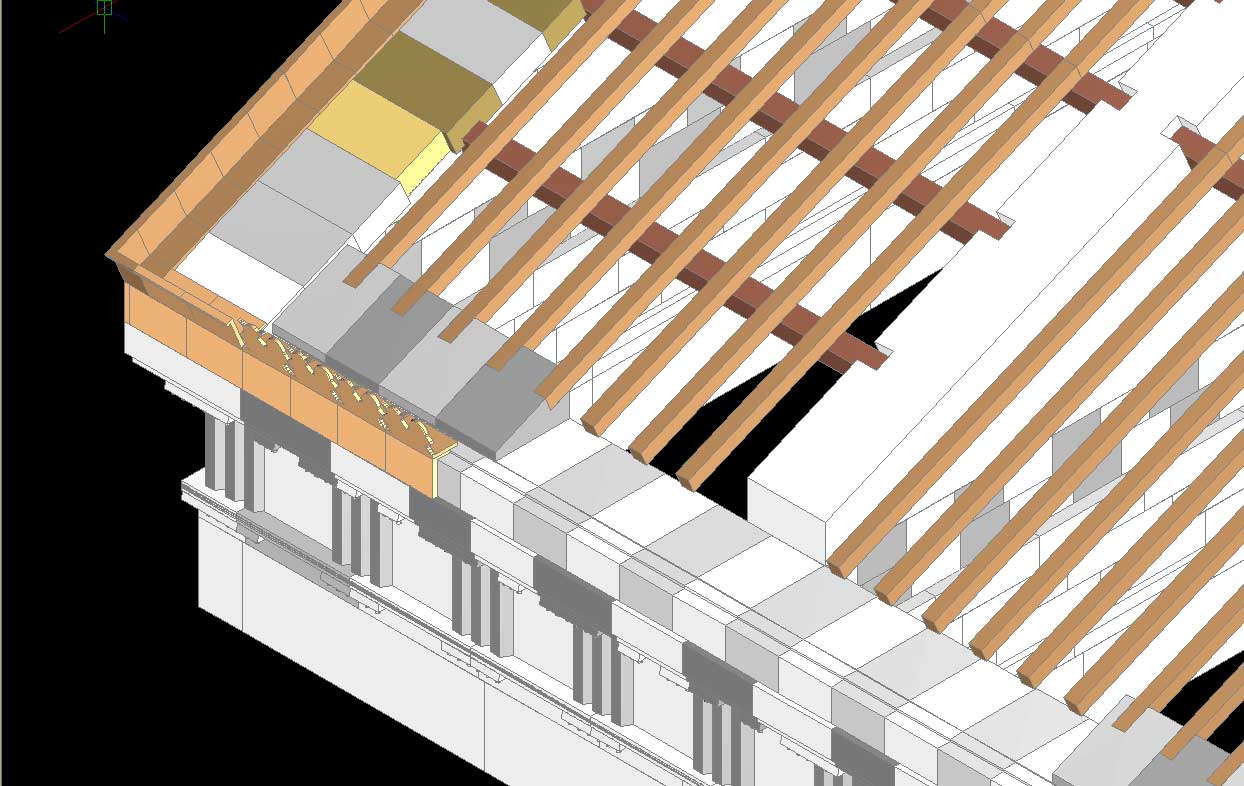 Fig. 11 — Selinunte. Tempio C. Ricostruzione dell’orditura del tetto (AMICI 2010)