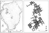 Dobbiamo innanzitutto considerare che cosa si lasciano alle spalle questi individui che partono dalla Grecia tra la fine dell’VIII e l'inizio del VII secolo a.C. Più avanti affronteremo gli aspetti dell’architettura e dell’urbanistica delle nuove poleis dell’Occidente. Quando pensiamo alle colonie della Sicilia e della Magna Grecia ci immaginiamo subito i grandi templi dorici o i teatri, ma queste sono realizzazioni architettoniche molto più tarde. I primi coloni lasciano la Grecia quando le esperienze architettoniche sono agli esordi. In quest’epoca le città greche ancora non hanno impianti urbanistici di tipo ortogonale. C’erano molti insediamenti sparsi, come ad esempio ad Emporio di Chios, con case isolate, realizzate in materiali deperibili, di cui molte a pianta ellittica (fig. 1); hanno zoccoli in pietra e un alzato in mattoni crudi o in pisé, talvolta in pietrame, entro un telaio ligneo portante (fig. 2). A Lathouriza, in Attica, troviamo un altro insediamento di questo genere, con tipologie abitative miste: case a pianta rettangolare in mezzo ad altre a pianta curvilinea (fig. 3). Si hanno altrimenti impianti urbani come quello di Zagora di Andros, nelle Cicladi, con case a pianta rettangolare fittamente addossate; non ci sono vere e proprie strade, ma dei passaggi tortuosi che consentono l’accesso alle varie abitazioni (fig. 4). Cominciano a essere costruite in quest’epoca anche le cinte urbane. Un esempio di VIII secolo sono le mura di Smirne, costituite da uno zoccolo in grandi blocchi di pietra e la parte superiore in mattoni crudi (fig. 5). All’interno gli edifici della città avevano tetti straminei; ancora non ci sono le tegole.