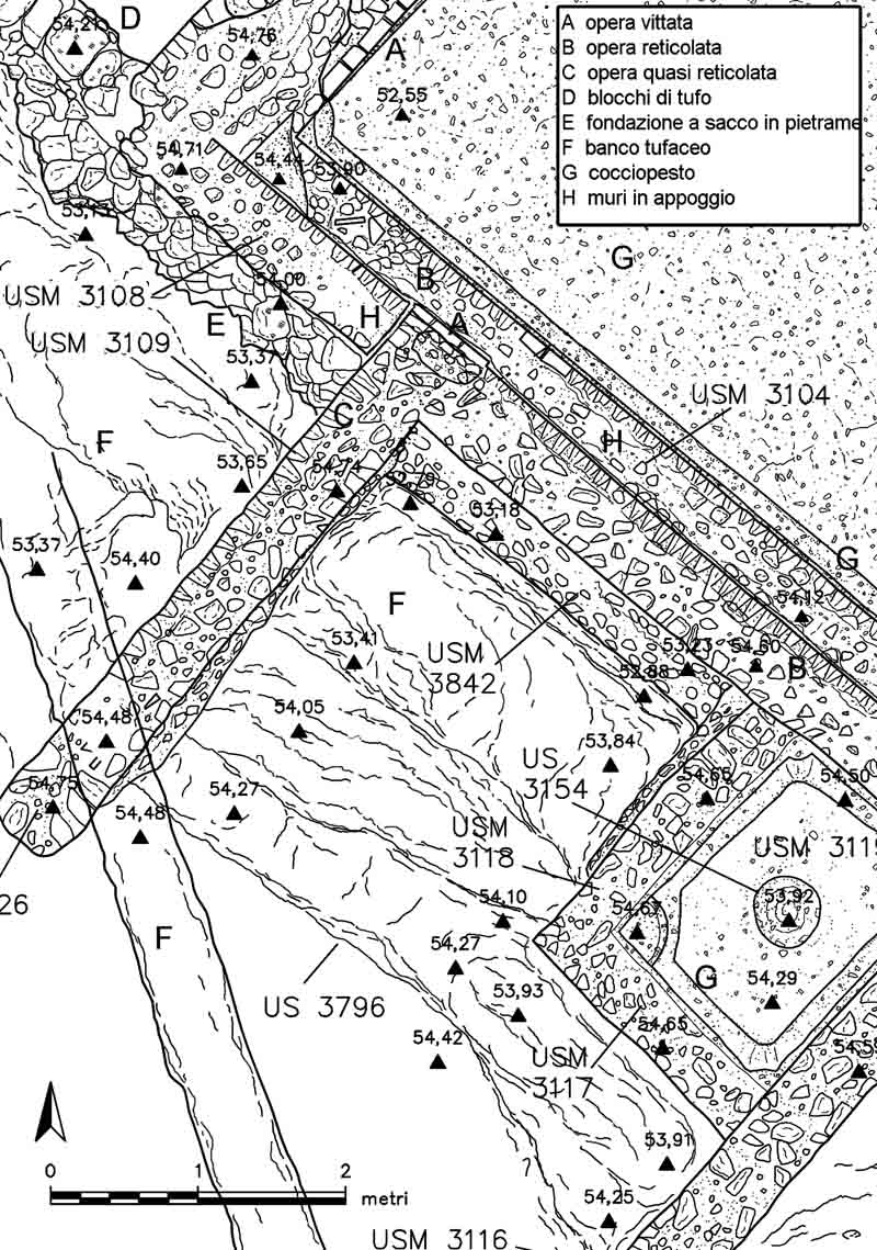 Figura 12 — Pianta composita di fine scavo. Scala 1:50 (rilievo Marco Bianchini, Geraldine Pizzitutti)