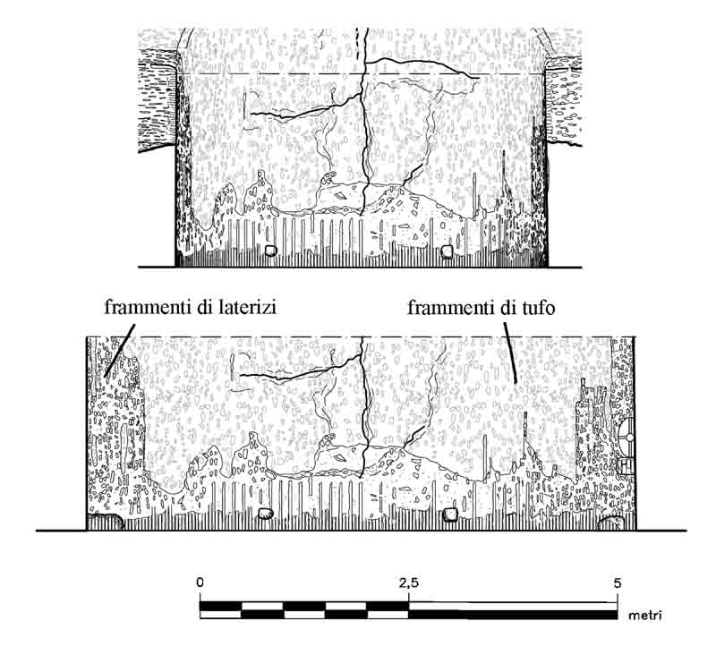 Figura 6 - Rappresentazione dal basso di una volta a botte. Sopra: proiezione su un piano orizzontale. Sotto: proiezione su una curva tangente all’intradosso