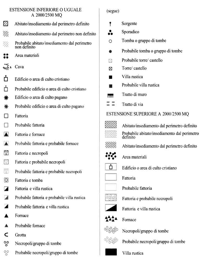 Figura 20 — Simbologie in uso nella Carta Archeologica della valle del Sinni (da