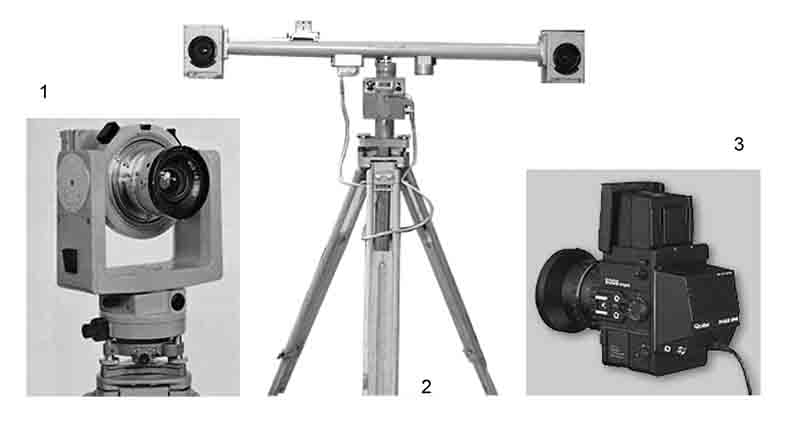 figura 48a - 1. Fotocamera metrica Wild P31. 2. Fotocamere metriche Zeiss SMK. 3. Fotocamera metrica digitale Rollei DB 44.