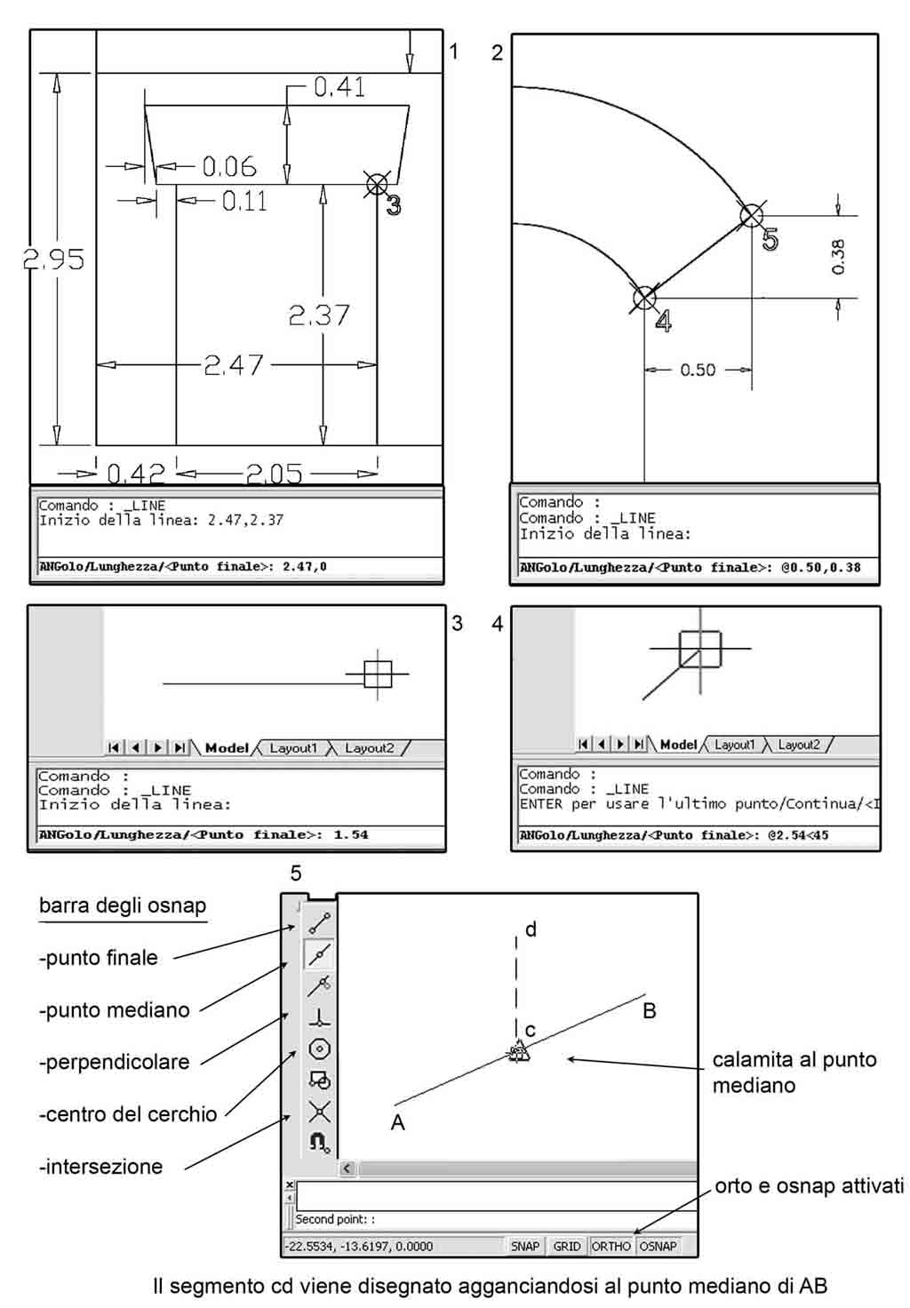 figura 71b — Disegnare per mezzo di valori numerici (nn. 1-4 AutoCAD; n.5 A9CAD)