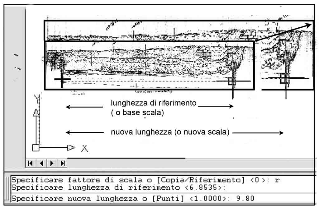 figura 74b - Sezione scalata sulla base di una lunghezza di riferimento (AutoCAD)