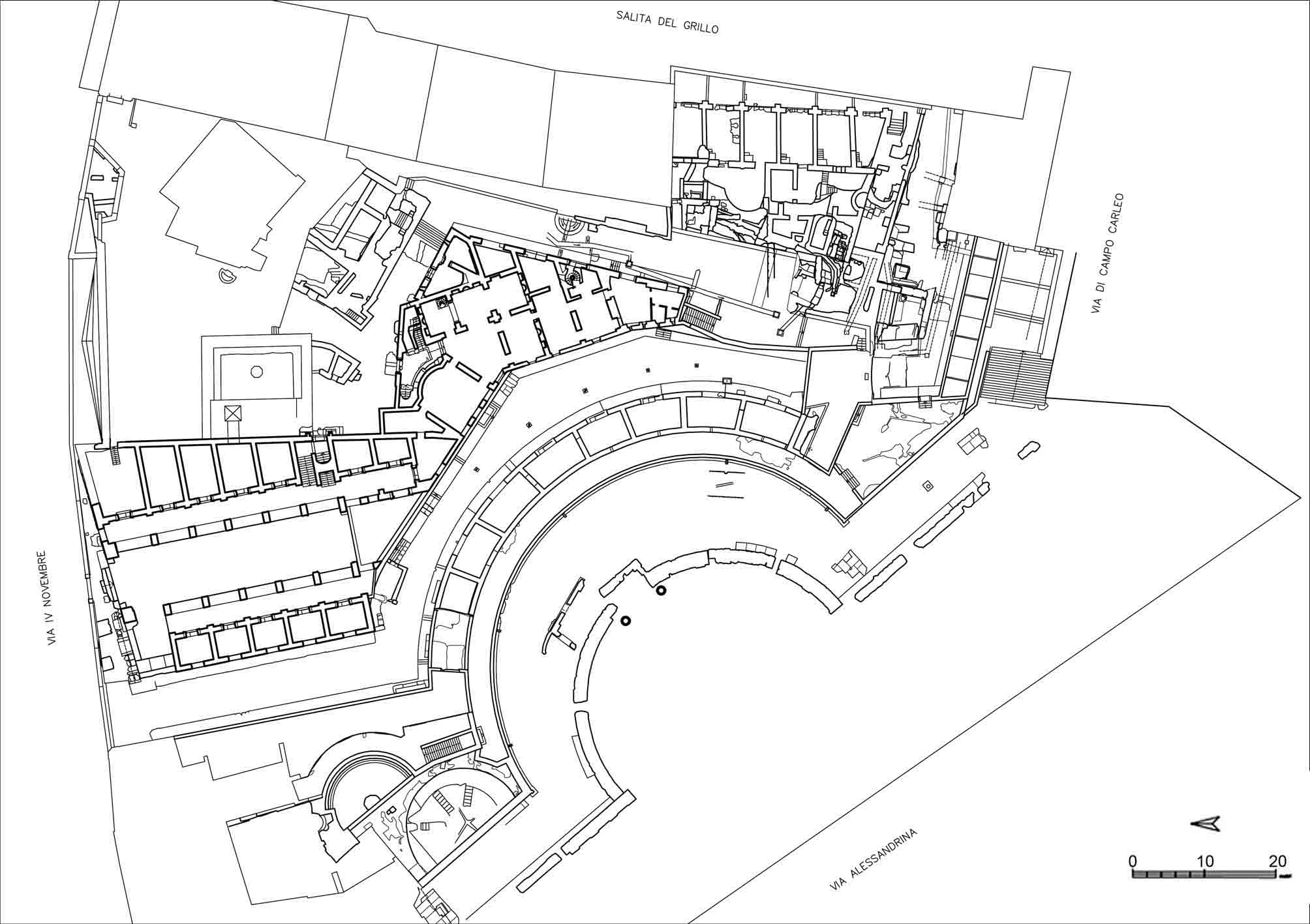 figura 82 - “Mercati” di Traiano. Pianta d’insieme vettoriale (M.Bianchini, in AA.VV., op cit. a