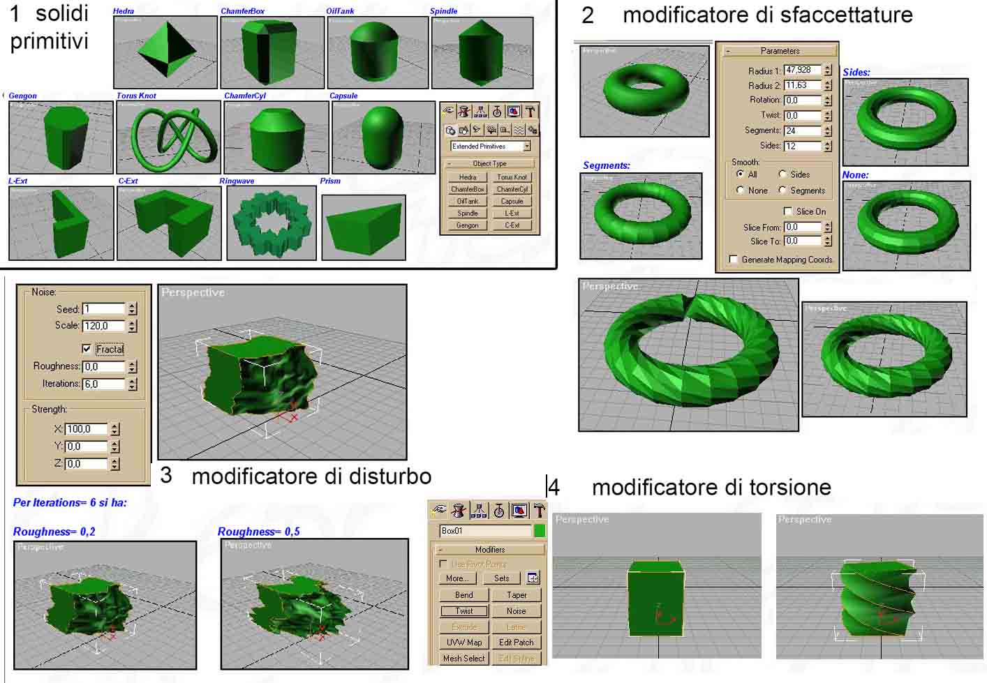 figura 95a - Solidi primitivi e modificatori di 3d Studio Max
