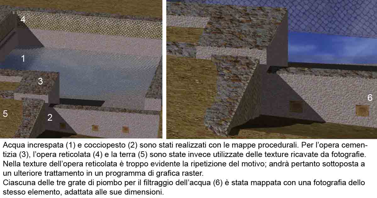 figura 100d - Mappatura del modello 3d di una vasca antica in opera reticolata con rivestimento in cocciopesto (Roma, Tenuta Radicicoli, sito n. 66, ricostruzione di Marco Bianchini)