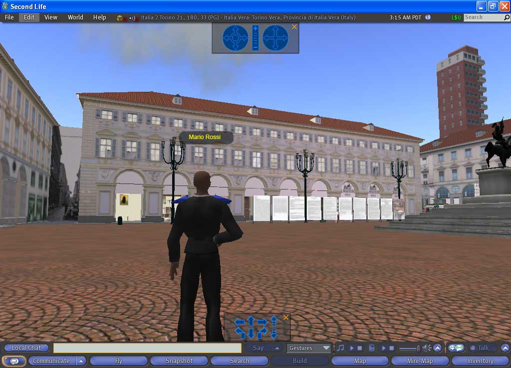 figura 107 b - Navigazione in Second Life all'interno dell'isola "Torino vera" dove, per iniziativa del Gruppognosys, è stata ricostruita una parte del centro storico di Torino (