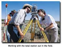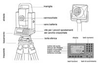 La stazione totale è lo strumento oggi comunemente utilizzato per il rilievo indiretto (fig. 33a) Sostanzialmente si differenzia dal tradizionale teodolite ottico-meccanico per essere dotato rispetto a quello di un distanziometro elettronico e di un computer per la memorizzazione e il calcolo dei dati. Consente di misurare angoli e distanze di una serie di punti e di determinarne l’esatta collocazione spaziale rispetto a un sistema di coordinate predefinito.