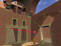Nella prassi attuale del rilievo indiretto si preferisce usare il prisma montato su un treppiede nella misurazione di capisaldi topografici, soprattutto se situati a una notevole distanza (fig. 36b). Il rilievo dei punti di dettaglio viene effettuato in modo più rapido colpendo direttamente le superfici murarie. Il riflettore montato su una palina impugnata da un operatore, che la tiene in verticale guardando nella bolla sferica, può risultare comoda per il rilievo di punti a terra in quanto sveltisce la procedura di collimazione (fig. 36c). Quando si usa il prisma bisogna ricordarsi di misurarne l’altezza da terra e inserire questo dato (altezza del riflettore) nel computer.