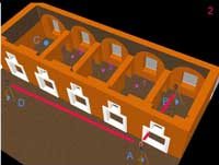 L’elaborazione di un rilievo schematico può essere completata direttamente all’interno del programma. Sarà sufficiente disegnare i profili dei vari elementi architettonici collegando con delle linee i punti rilevati (fig. 41a). I computer delle stazioni totali supportano appositi software che consentono di svolgere queste semplici operazioni grafiche sul campo, visualizzandole nel display. Altrimenti si completerà l’elaborazione in un secondo momento, scaricando il file del rilievo nel pc e utilizzando un CAD professionale che consentirà di aggiungere caratteri di testo, simboli grafici e altro. Il disegno potrà infine essere stampato alla scala desiderata scegliendo tra i vari punti di vista. Questa procedura, che evita la fase del rilievo diretto, è normalmente adottata nel rilievo architettonico, ma può esser utilizzata anche in ambito archeologico per la rappresentazione di complessi edilizi o aree urbane da stampare a piccola scala - 1:200 e inferiori.