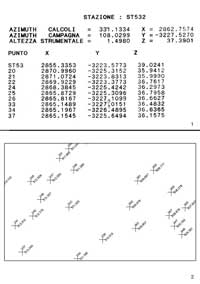 La lettura dell’angolo azimutale, dell’angolo zenitale e della distanza inclinata viene effettuata, come si è detto, premendo il tasto “All”. Le tre misure vengono immediatamente visualizzate sul display e memorizzate. Il computer è in grado di calcolare i valori in coordinate x, y, z di ogni punto misurato rispetto al sistema di riferimento — locale o assoluto — che è stato adottato.