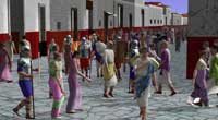 Uno dei più ambiziosi progetti di ricostruzione e di navigazione in tempo reale di un ambiente urbano dell'antichità, che si caratterizza anche per un più soddisfacente livello di dettaglio degli oggetti 3d, è "Rome Reborn", frutto del lavoro condotto dall'Institute for Advanced Technology in the Humanities della University of Virginia in collaborazione con varie istituzioni scientifiche internazionali, tra cui l'UCLA Cultural Virtual Reality Laboratory, l'Università di Caen, il Politecnico di Milano, il quale dal novembre 2008 è stato reso fruibile su Google Earth. Il modello tridimensionale mostra l'intera città di Roma compresa all'interno delle mura aureliane così come essa doveva apparire nel 320 d.C. (fig. 107c) ed è costituito da due tipi di elementi: uno è quello degli edifici principali e più documentati, che sono stati ricostruiti con maggiore accuratezza e sono navigabili anche internamente - ne sono stati realizzati per il momento 32 -; l'altro, largamente maggioritario, stimato in circa 7.000/10.000 unità, è quello delle fabbriche che sono andate perdute, prevalentemente abitazioni, le quali sono ipoteticamente ricostruibili solo in base a confronti tipologici. Per la realizzazione di questa seconda classe di edifici, che sono visibili solo dall'esterno, si è partiti dalla scansione 3d del grande plastico della Roma costantiniana esposto al Museo della Civiltà Romana; sono state poi arricchite le forme delle case con un maggiore dettaglio degli elementi architettonici (soprattutto porte, finestre e balconi) e facendo uso di texture.
