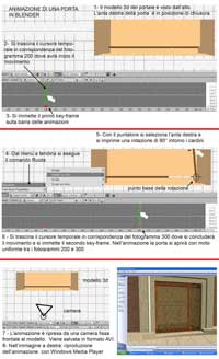 Potremmo in alternativa creare un altro key-frame al fotogramma 500, attivare il comando Ruota, imprimere alla porta una rotazione in senso contrario e poi fissare un’ultima chiave al fotogramma 600. In questo caso la porta dopo essere rimasta ferma per otto secondi tra i fotogrammi 300 e 500, tornerà a chiudersi con una rotazione graduale che durerà anche stavolta quattro secondi. Se vogliamo invece farla chiudere più velocemente possiamo posizionare l’ultima chiave sulla tacca del fotogramma 550, così la rotazione si risolverà in metà tempo.