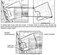 La georeferenziazione di una carta raster può utilizzare la medesima procedura appoggiandosi a una planimetria vettoriale già orientata se questa, come è il caso di molte mappe derivate dalla aerofotogrammetria, può considerarsi sufficientemente precisa. In questo caso si potranno selezionare alcuni punti comuni a entrambe, identificabili con spigoli di palazzi o altre emergenze sul territorio (fig. 118).