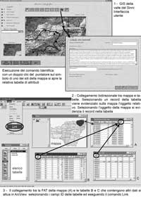 Si è visto nel capitolo precedente che i software per la gestione dei database consentono di organizzare e collegare i dati alfanumerici con archivi di immagini — comprendenti tra gli altri anche documenti cartografici - dando modo di navigare agevolmente dagli uni agli altri. Rispetto a questo tipo di programmi la specificità del GIS consiste nel fatto di poter operare un collegamento logico tra i diversi tipi di dati sulla base della loro collocazione spaziale. Le mappe, le foto e i documenti iconografici che vengono visualizzati nelle maschere di un DBMS sono sequenze di immagini che scorrono le une appresso alle altre come le pagine di un album fotografico; nel GIS saranno invece georeferenziate e sovrapponibili e le informazioni alfanumeriche delle tabelle troveranno di conseguenza una proprio riferimento geografico. Ciò costituisce il fondamento delle analisi spaziali, che è una delle principali particolarità delle applicazioni GIS.