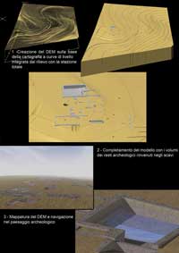 Le analisi spaziali presuppongono la costruzione di modelli digitali del terreno tridimensionali e complessi. L’attendibilità dei risultati dipende infatti da una ricostruzione il più possibilmente fedele rispetto al dato originario, che prenda in considerazione molteplici elementi, non solo l’orografia, ma anche presenze architettoniche, fossati, vegetazione e quanto altro.