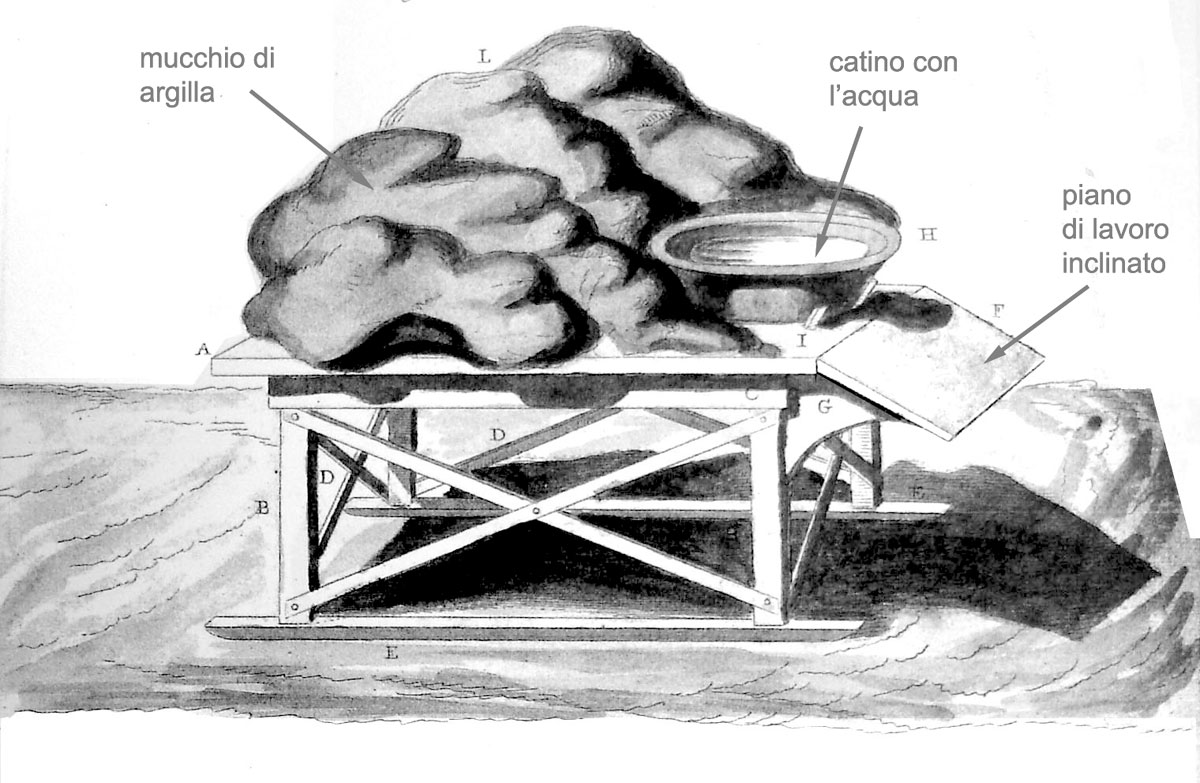 Figura 4 - Banco per la fabbricazione dei laterizi, simile a quello utilizzato dai fornaciai di Poggetello (da G. Valadier,