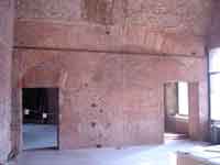 Figura 19 - L'ambiente principale del "piano nobile" (III livello) del Corpo Centrale. La sala affacciava sul tratto centrale della via Biberatica, illuminata da tre ampie finestre rettangolari sormontate da una finestrella iscritta nella lunetta della volta. La parete del lato opposto presenta al centro un'abside che inquadrava assai probabilmente la postazione del funzionario più importante del grande complessivo amministrativo, erroneamente identificato negli anni trenta del secolo scorso con un mercato. Cfr. sull'argomento M. Bianchini, Mercati Traianei. La destinazione d’uso, in BdArch, 16-18, 1992, pp. 145-163.