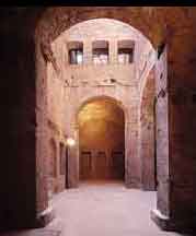 Figura 20 - Gli appartamenti ai due piani superiori del Corpo Centrale prendevano luce, oltre che dall'esterno, da uno stretto cortile ancora molto ben conservato. Al livello inferiore, che corrisponde a quello del "piano nobile", si aprono ai lati degli ambienti con delle nicchie alle pareti, forse utilizzate come archivi. Le tre nicchie sul lato destro del cortile è più probabile che ospitassero delle sculture.