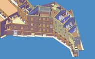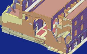 Vedute assonometriche da SO degli ambienti interni (stato attuale)