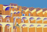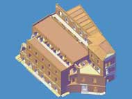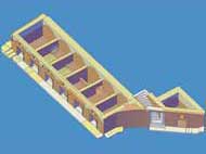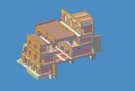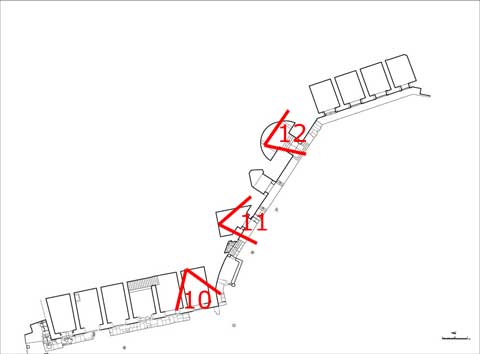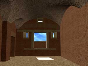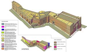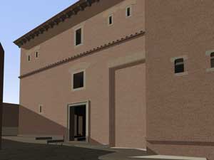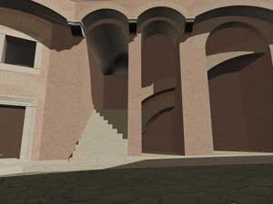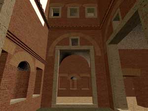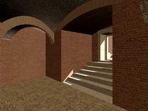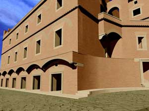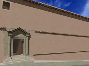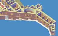 Le immagini che presento qui sotto possono essere ingrandite, come tutte le altre, con un clic del mouse. Il collegamento rimanda a una pagina contenente la stessa immagine in grande formato, una fotografia dello stato attuale - anche questa da ingrandire con un clic - e una didascalia in cui la ricostruzione viene motivata con la interpretazione delle strutture conservate.